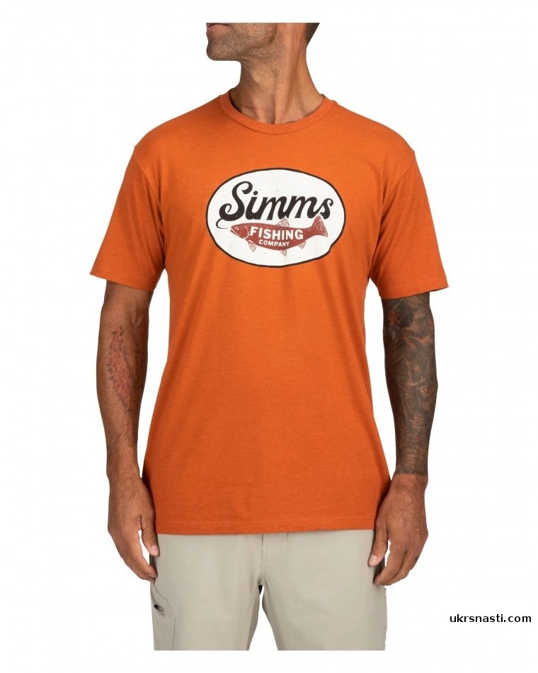 Очень яркая и стильная оранжевая футболка с фирменным логотипом Simms. Футболка пошита из хлопка и полиэстера. Благодаря современному дизайну идеально сочетается с большинством видов повседневной одежды, а также часто применяется для рыбалки. Подходит для машинной стирки и сушки.