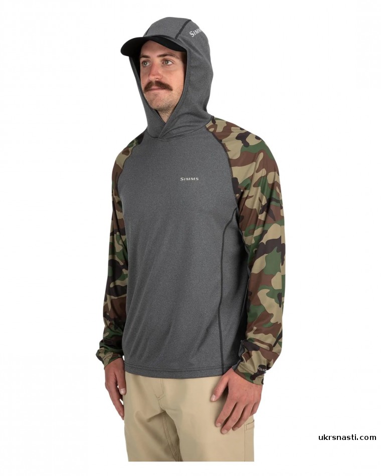 Худи Simms SolarFlex Hoody Woodland Camo/Carbon Heather размер M
