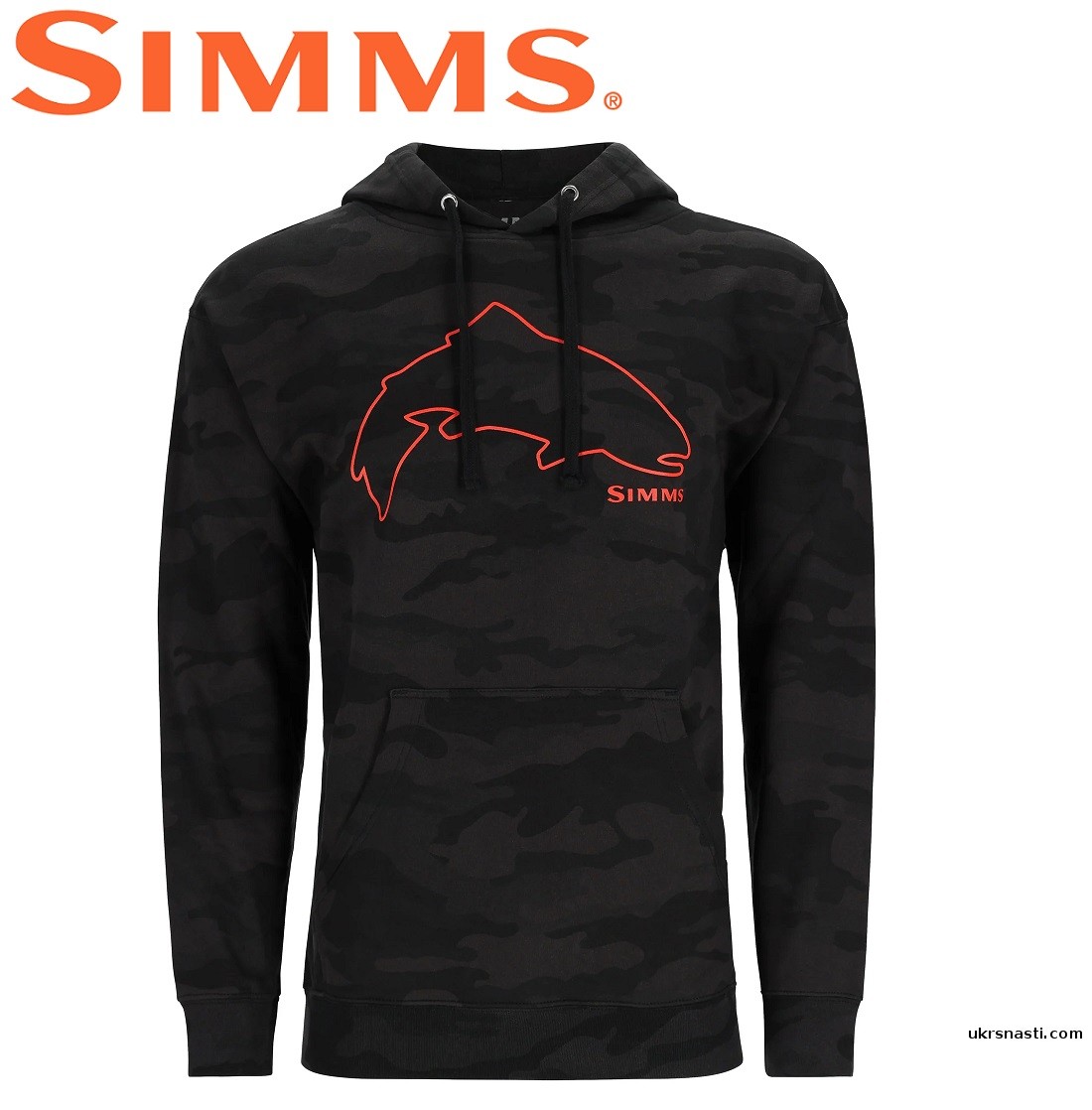 Худи Simms Trout Outline Hoody Woodland Camo Carbon размер 2XL