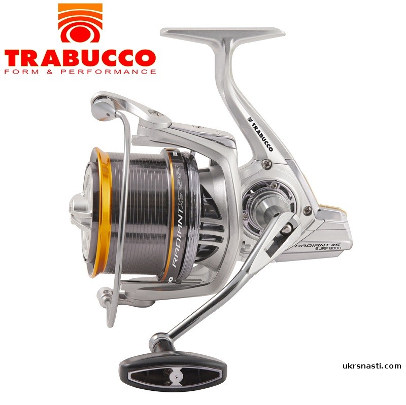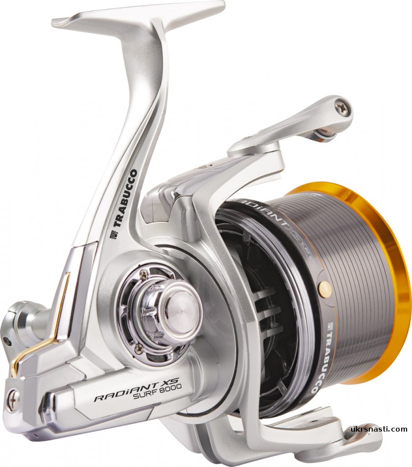 Trabucco Radiant XS Surf – новая катушка, представленная в 2022 году для сюрвой ловли. Катушка поражает как качеством, так и ценой. Катушка выполнена в корпусе X-Tra Tough закалённого графита. В корпусе заключен мощный и надёжный механизм, дополненный 7-ю высококачественными подшипниками с высокой стойкостью к воздействию солёной воды. Катушка оснащена бесконечным антиреверсом, алюминиевой шпулей, быстрым передним фрикционом Smart Drag, валом из нержавеющей стали, титановым направляющим роликом Anti-Twist, червячным валом и дисками увеличенного размера с тефлоновым покрытием. Кроме того, данную модель дополняет точеная алюминиевая ручка с эргономичным кнобом, Powerbail и 2 дополнительные тефлоговые шпули.