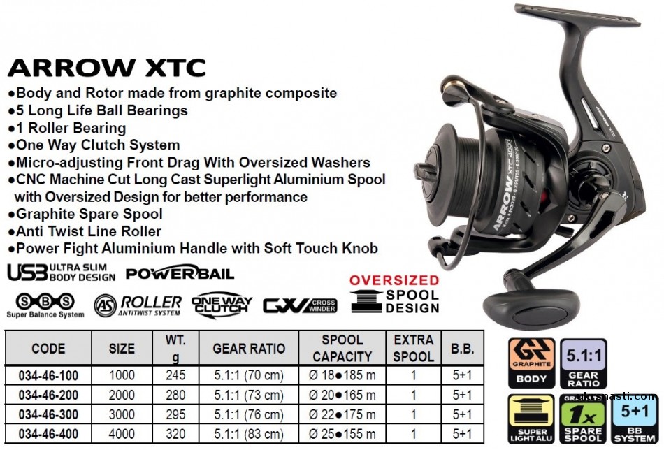 Trabucco Arrow XTC FA – отличное решение для тех, кто ищет универсальную катушку с прекрасными характеристиками при доступной цене. Серия представлена четырьмя моделями, из которых меньшие станут отличным дополнением к спиннинговым удилищам, а более старшие отлично подойдут для пикера или фидера. Катушки демонстрируют прекрасную работу при любых условиях, особенно при вываживании трофейной рыбы.