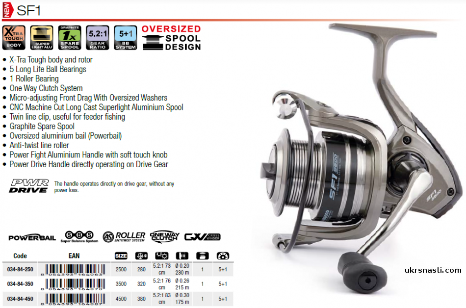 Trabucco SF1 – серия катушек для рыболовов, предпочитающих иметь всегда под рукой настоящие универсальные агрегаты для спиннинговой и фидерной ловли. Серия достаточно небольшая, но предложенные модели способны перекрыть основной спектр популярных размеров. Катушка под размером 2500 хорошо подойдет для спиннинга, особенно для тех, кто только делает первые шаги в этой области, 3500 является прекрасной парой к пикеру, а сама старшая модель, 4500, демонстрирует превосходные результаты при ловле с фидером лайт и медиум класса.