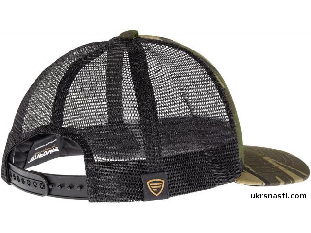 Современная кепка с фирменным логотипом на передней части. Кепка придает стильность и подчеркивает индивидуальность владельца. Подходит для использования как на рыбалке, так и в повседневной жизни. Кепка выполнена в камуфляжном цвете и имеет сетку на тыльной стороне для лучшей вентиляции.
