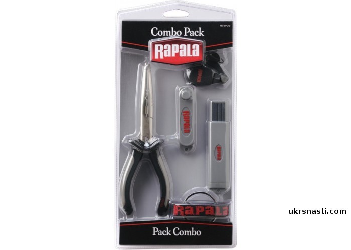 Комбо-набор Rapala RTC-6PCHS состоит: плоскогубцы 16 см, кусачки, инструмент для снятия краски с колечка крючка джиговой головки, точилка для крючков.