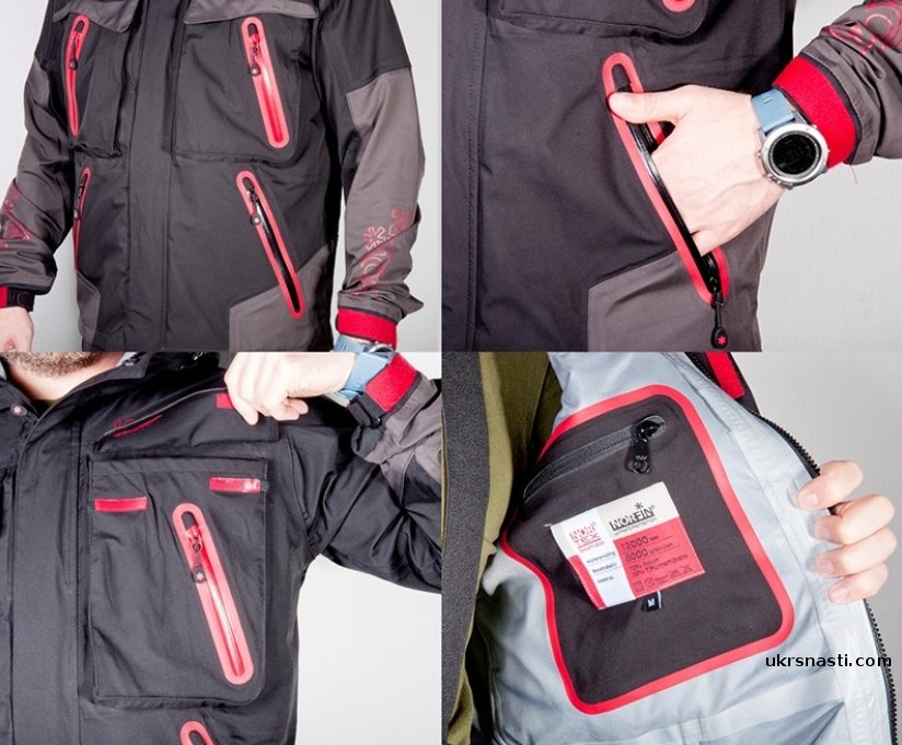 - Четыре нагрудных кармана куртки, два закрываются непромокаемой молнией YKK, другие два имеют клапан с застежкой из текстиля