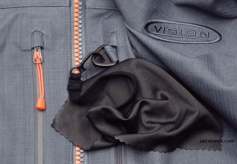 Платок для поляризационных очков. прикрепленный к D-образному кольцу на левом нагрудном кармане