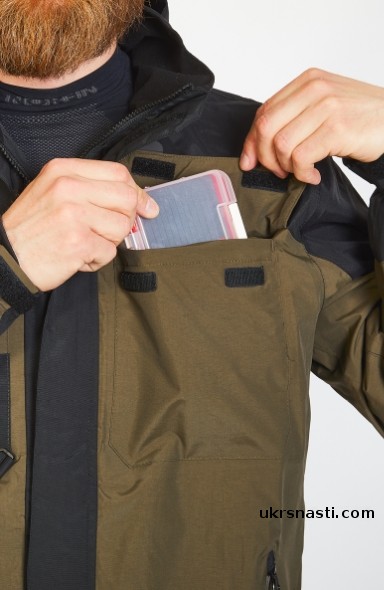 - Застежки Velcro из текстиля защищают содержимое нагрудных карманов от влаги