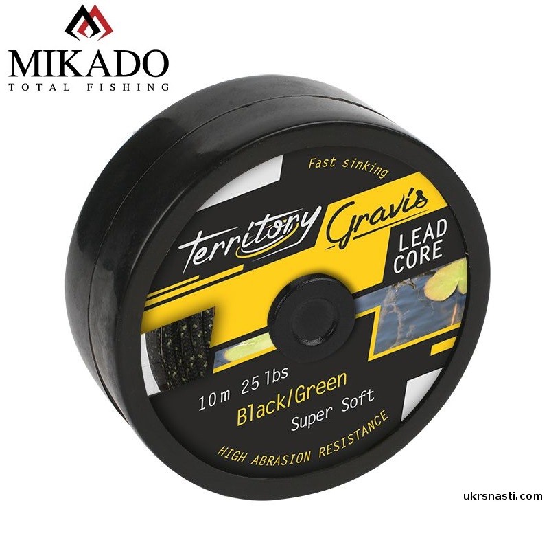 Ледкор Mikado Gravis Leadcore разрывная нагрузка 15,88кг размотка 10м чёрный/зелёный
