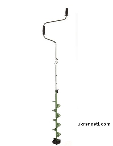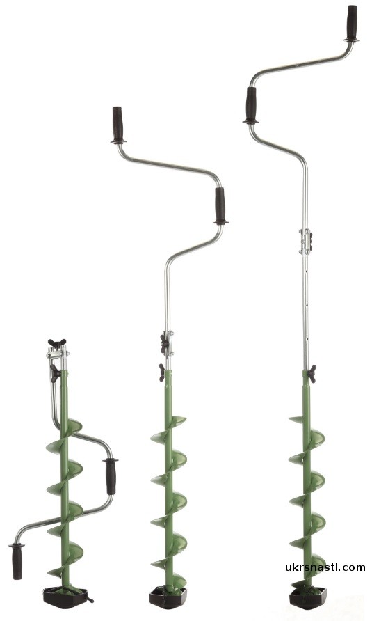 Телескопическая выдвижная рукоятка позволяет регулировать высоту ледобура