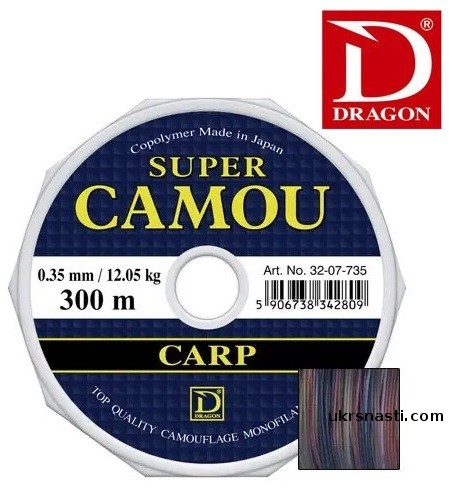 Леска Dragon Super Camou Carp диаметр 0,35мм размотка 300м камуфляжная
