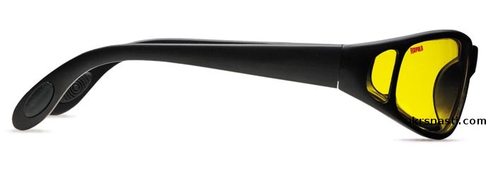 Очки легкие и ударопрочные, со специальным дизайном дужек, шарнирами с внутренней пружиной, с резиновыми накладками на упоре и резиновыми наконечниками.