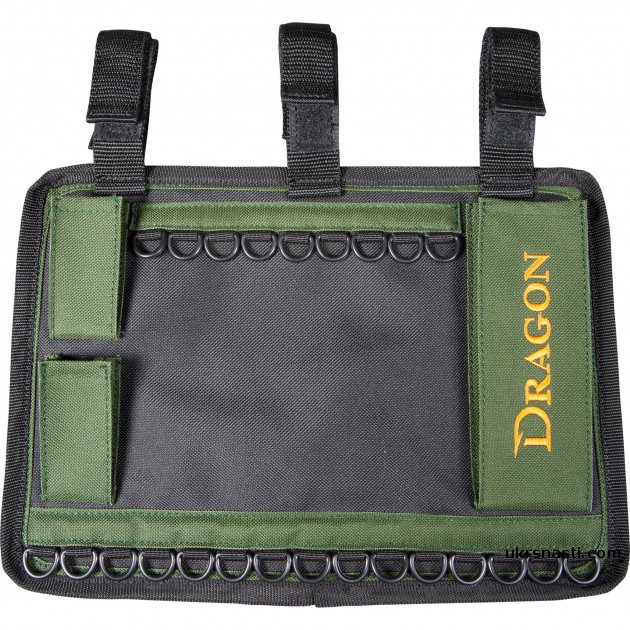 Практичный органайзер из прочного материала с большим количеством крючков для размещения приманок и тремя карманами для аксессуаров.