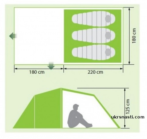 - Размер внутренней палатки (см): 210x180x120