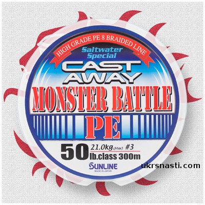 SUNLINE CAST AWAY MONSTER BATTLE – плетенка, назначение которой полностью отображено в ее названии. Толстая, но при этом предельно гладкая нитка создавалась специально для ловли самых трофейных обитателей морских глубин. Она одновременно перекрывает все потребности и джиггинговой ловли (когда под словом джиггинг подразумевается скоростное отвесное блеснение в толще воды) и мощнейшей океанской рыбалки на поппер.