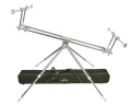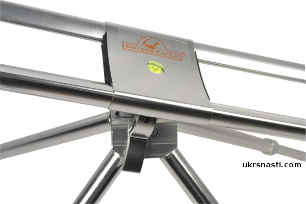 Также род-под GC оснащен встроенным уровнем, показывающим угол расположения удилищ относительно горизонтали. Благодаря четырем телескопическим ножкам обеспечивается точная регулировка род-пода GC по высоте в диапазоне 65-90 сантиметров.