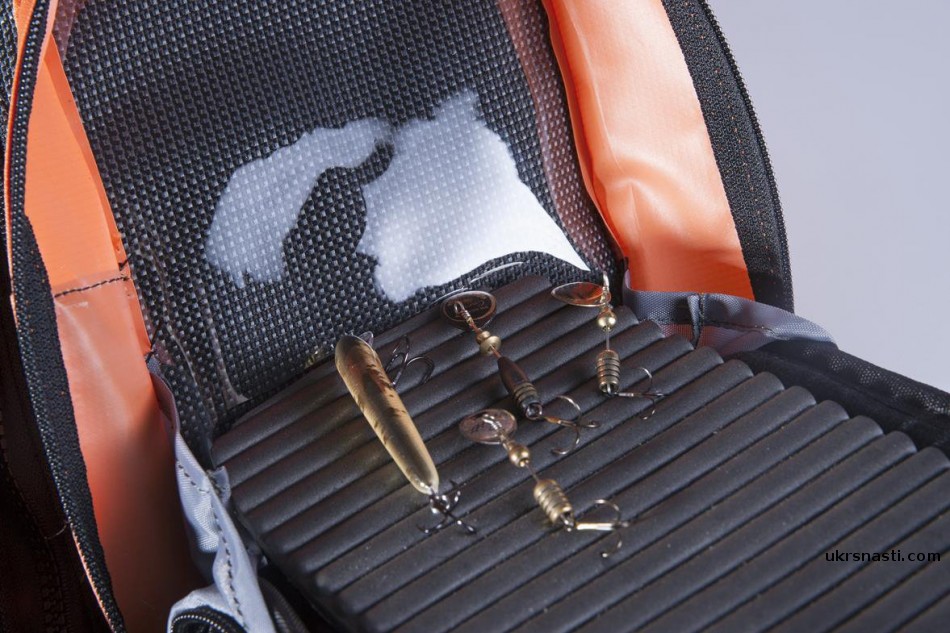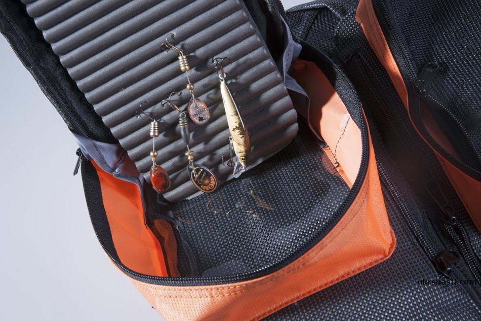 - Два запираемый кармана с пеной для воблеров, силикона или нахлыстовых мух, теперь крючки не цепляются за подкладку с обратной стороны.