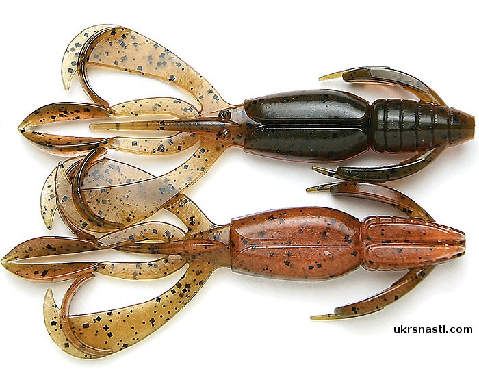 Новая суперуловистая приманка от японской компании Кейтеч способная успешно ловить больших и маленьких хищников. Имеет несколько подвижных хвостиков для лучшей игры и наибольшему сходству на донных ракообразных. Клешни и усики во время работы приманки шевелятся в разных плоскостях, что способно провоцировать даже пассивного хищника.