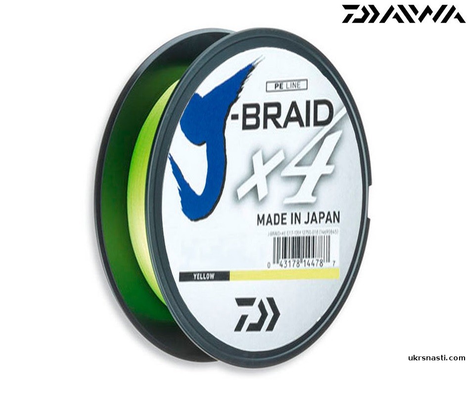 Шнур DAIWA J-Braid X4 #1,0 диаметр 0,13 мм размотка 270м цвет желтый