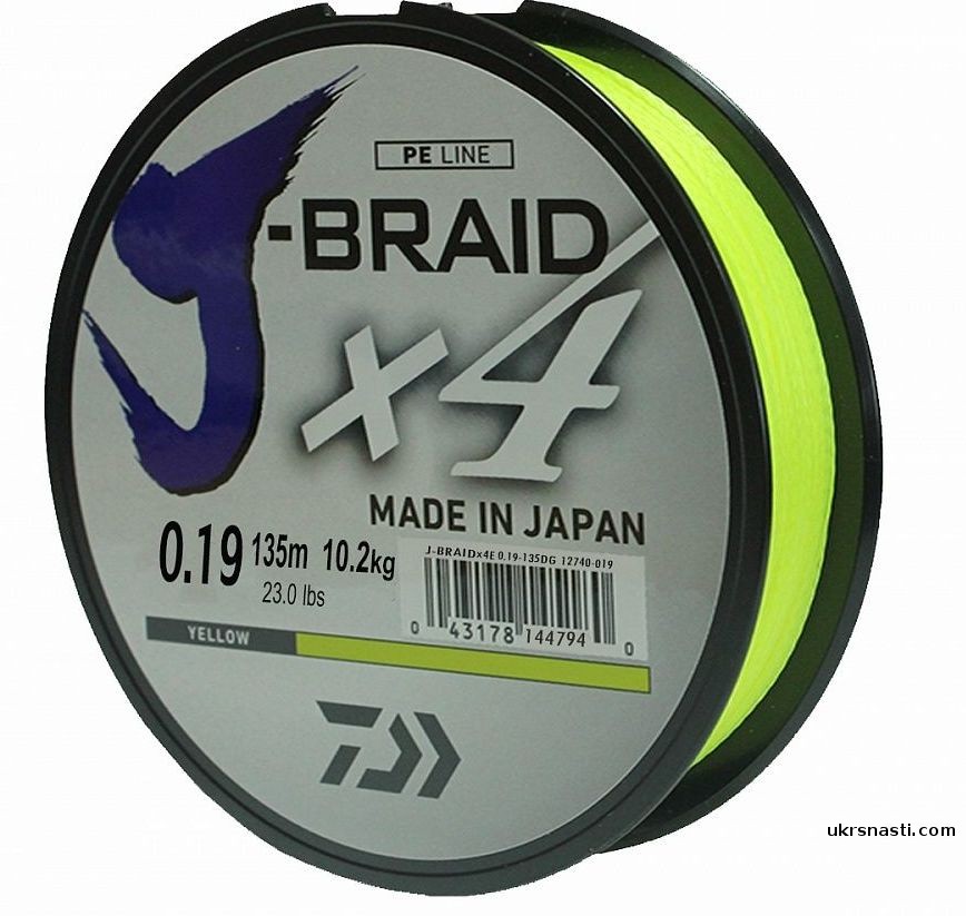 Шнур DAIWA J-Braid X4E #4,0 диаметр 0,29мм размотка 270м желтый