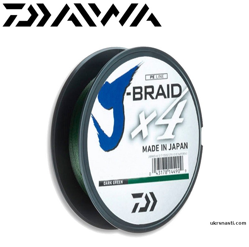 Шнур Daiwa J-Braid X4E Dark-Green #4,0 диаметр 0,29м размотка 135м тёмно-зелёный