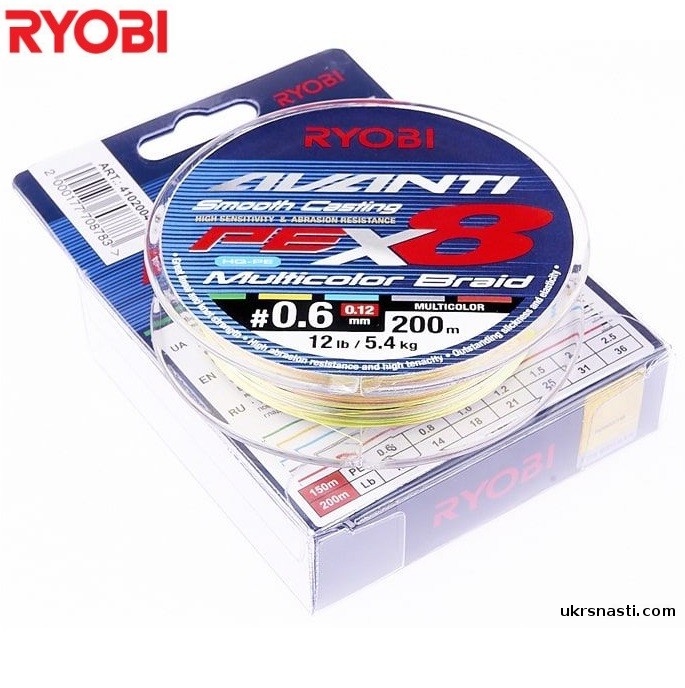 Шнур Ryobi Avanti X8 MC размотка 200м разноцветный Новинка 2021