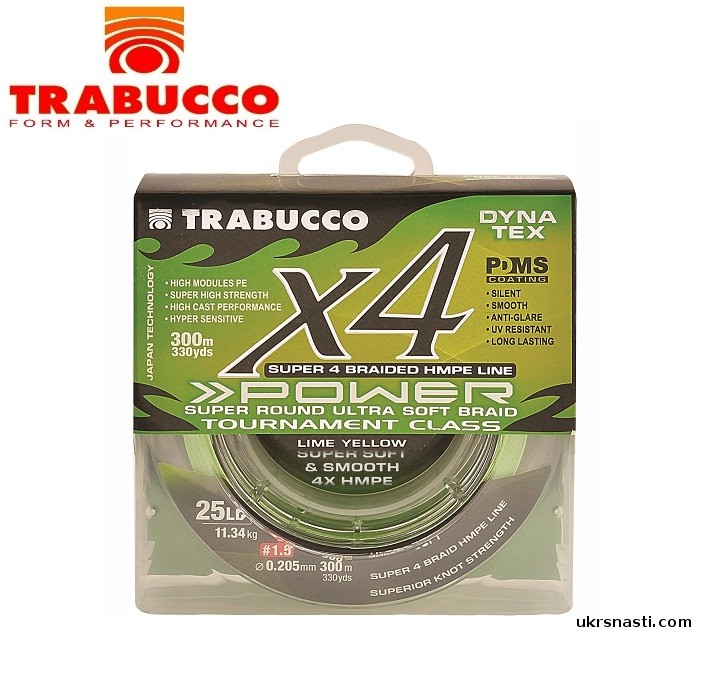 Шнур Trabucco Dyna-Tex 4X Power Lime-Yellow диаметр 0,285мм размотка 150м салатово-жёлтый