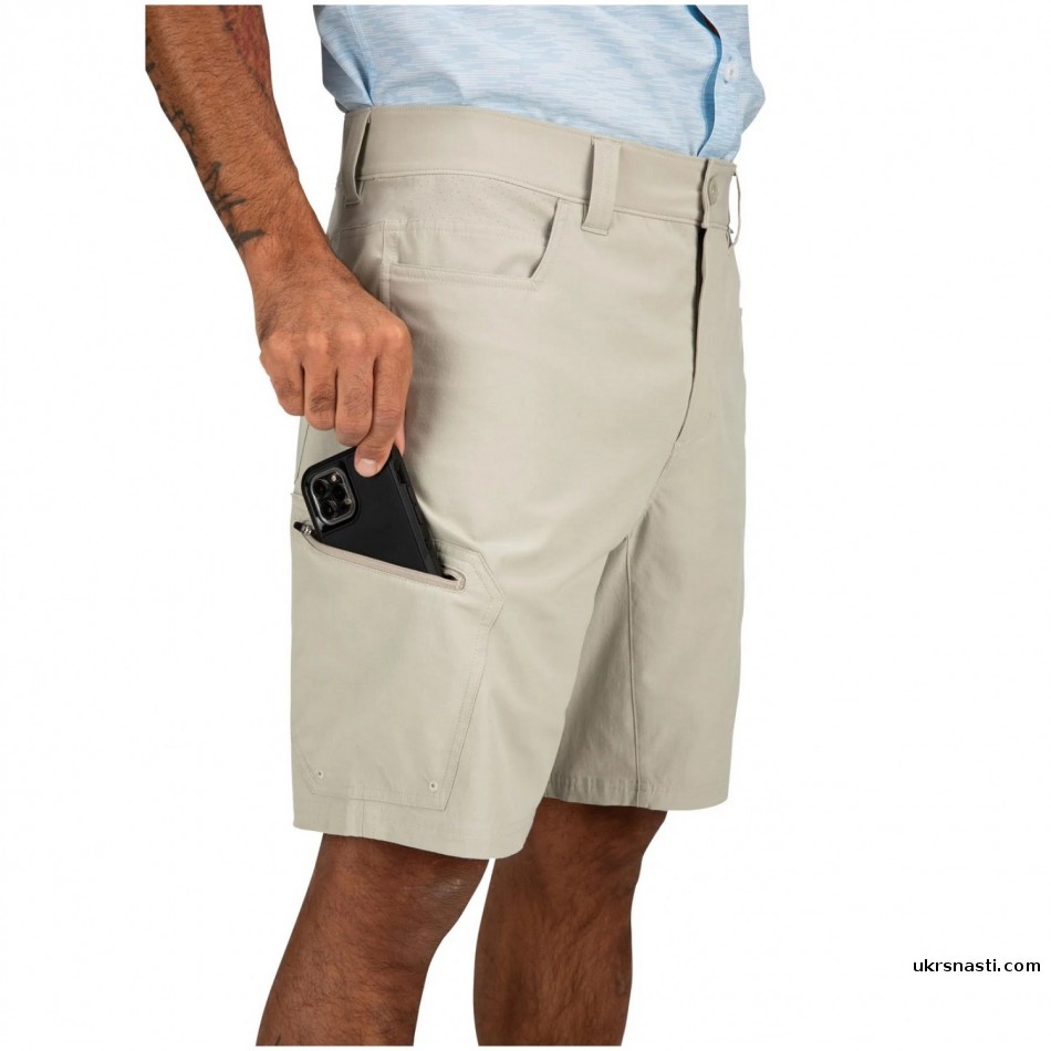 Идеальные шорты для летней рыбалки или повседневности. Шорты пошиты из сочетания коттона, спандекса и полиэстера.Шорты имеют 2 передних и задних кармана для рук. Правый набедренный карман на молнии со встроенным стоком воды. Задний карман на левом бедре предназначен для плоскогубцев или удобного хранения телефона.