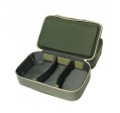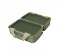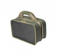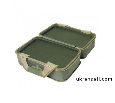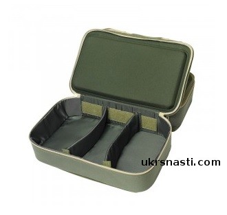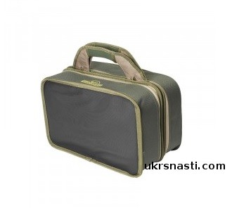 Вместительная сумка с возможностьюм эргономичного размещения снастей, чему способствует отделение с двумя съемными перегородками на липучках. В отделении можно разместить три большие карповые катушки. Второе отделение комплектуется одной карповой коробкой с множеством перегородок, в нем можно разместить шесть баночек для дипования и хранения бойлов. Дно сумки выполнено из материала, не пропускающего влагу, поэтому сумку можно безбоязненно ставить на мокрые поверхности. Две жесткие половинки прекрасно подходят для хранения инструмента, аксессуаров и работы с монтажами. Сумка может выступать в роли небольшого монтажного столика. Для переноски сумка имеет надежную ручку и высококачественную фурнитуру.