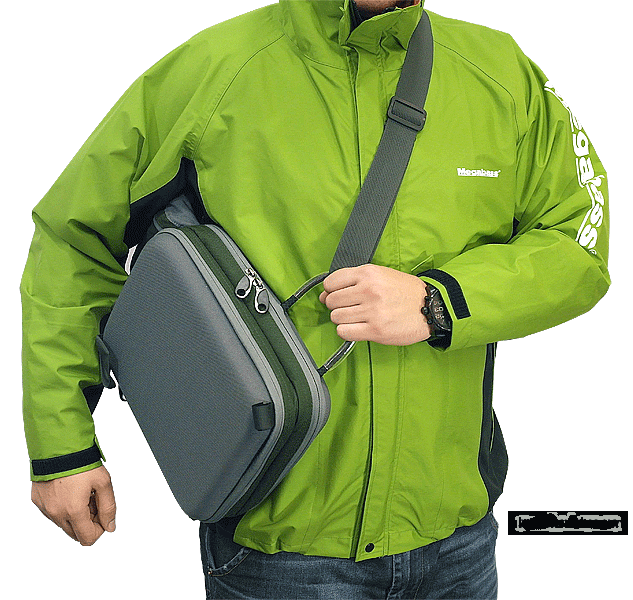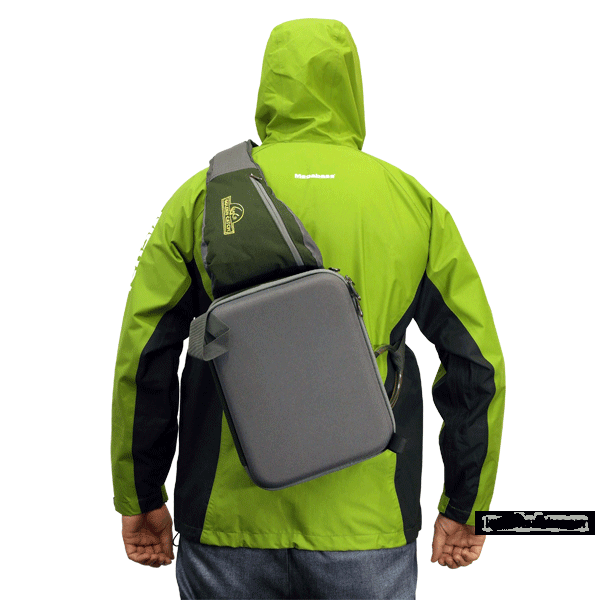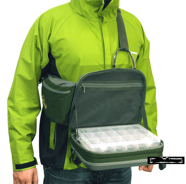 Особенное расположение ремня дает возможность в одном положении переносить сумку за спиной, а в другом удобно пользоваться принадлежностями и приманками, находящимся в двух съемных коробках. На ремне имеются два кармана, ретривер с гнездом для екстрактора и место для хранения ножниц или пассатижей.