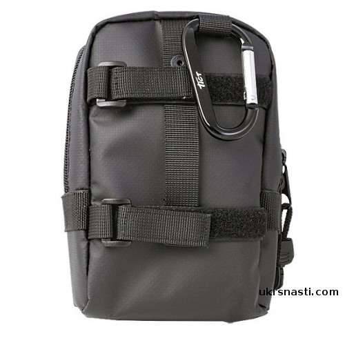 Незаменимая, очень удобная и компактная сумочка. Изготовлена из прорезиненного материала. Способна вместить в себе различные рыболовные аксессуары, рыболовные коробочки, кошелек, телефон, разные документы или ключи от машины. С помощью карабина или ремню позволяет удобно разместить на поясе или жилетке. Сумка имеет одно большое отделение, застегивающееся на двойную молнию. Внутри отделения имеется карман с утягивающей верх резинкой. По бокам справа и слева имеются тканевые вставки, на которые крепятся рыболовные инструменты.