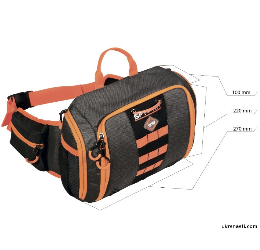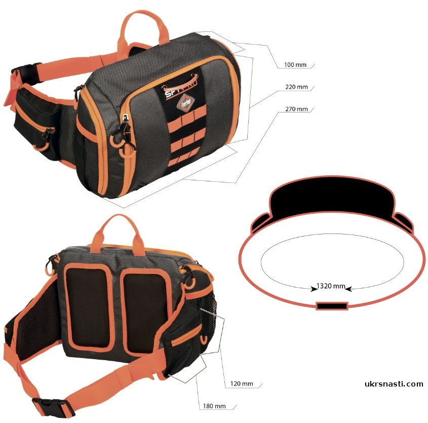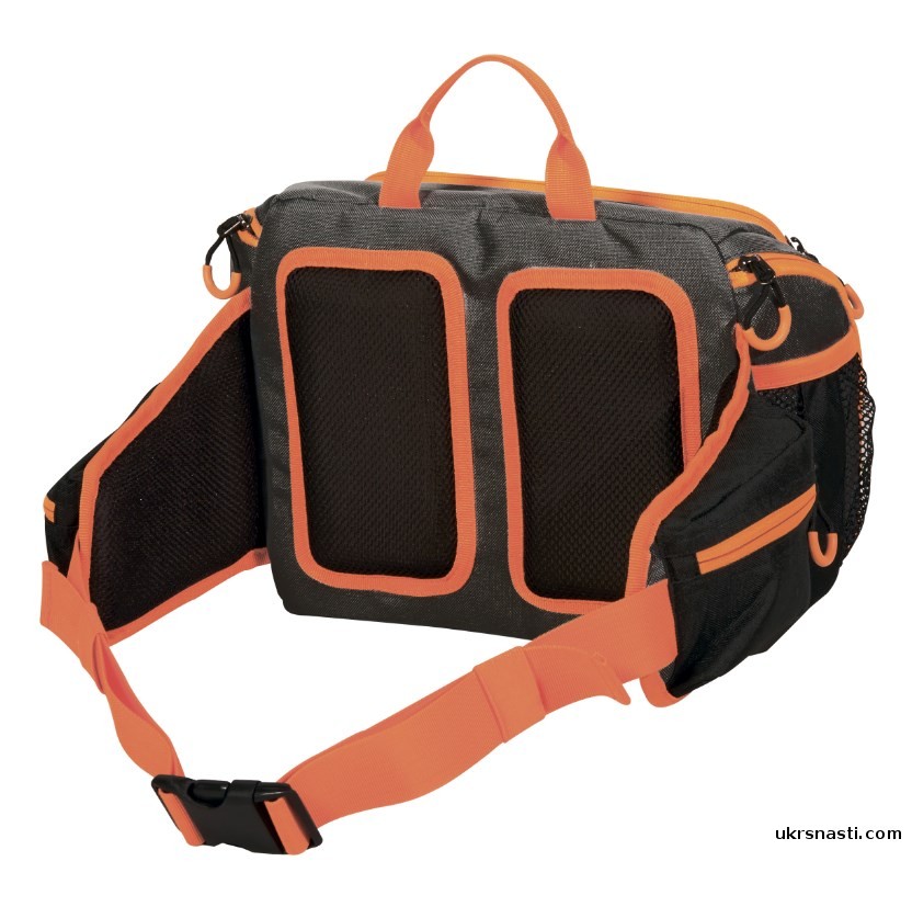 Универсальная поясная сумка для пешей спиннинговой рыбалки. Сумка имеет 4 кармана и достаточно вместительна для размещения необходимого количества мелочей, аксессуаров и даже приманок, необходимых для рыболовной сессии.