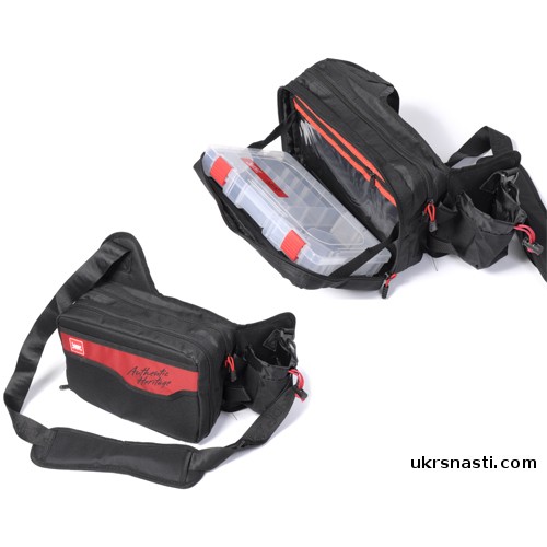 - Ремни – поясной и наплечный, регулируемые по длине, для фиксации сумки на рыболове