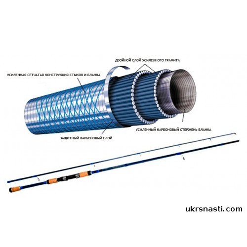 - стеклянные материалы epoxy glass (около 5% веса удилища) в сердечнике;