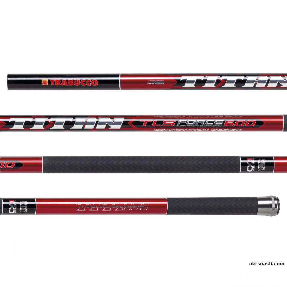 Titan TLS Force – одна из самых успешных серий маховых удилищ среди ассортимента Trabucco. Удилища выполнены на надёжных, тонких бланках, позволяющих испытывать максимальное удовольствие от процесса ловли. Серия достаточно универсальна. Она успешно применяется для ловли как в пресной, так и морской воде.