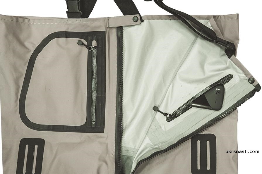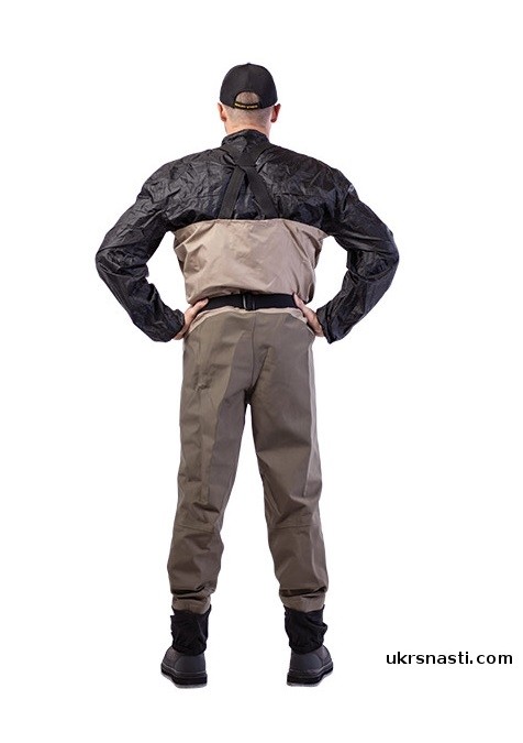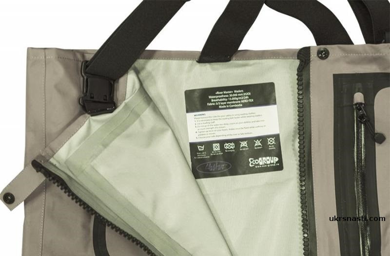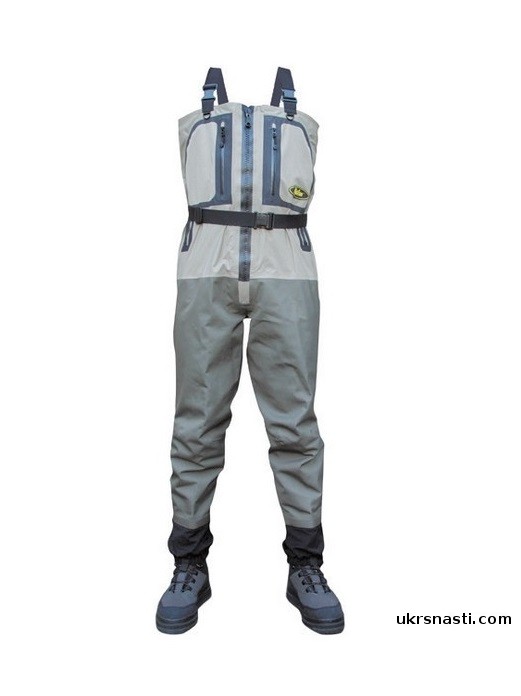 Вейдерсы изготовлены из трёх и пятислойных материалов «AERO-TEX» с повышенной дышащей способностью. Удобный анатомический крой позволяет комфортно чувствовать себя в процессе рыбной ловли весь день, а отсутствие шаговых швов на брючинах предотвращает преждевременное протирание и позволяет прослужить вейдерсам намного дольше стандартных моделей. Главное достоинство «River Master» - наличие современной водонепроницаемой молнии компании «RiRi», что заметно облегчает снятие/одевание. В комплект входит специальной транспортировочный мешок.