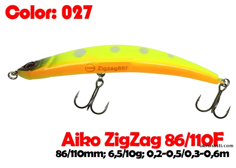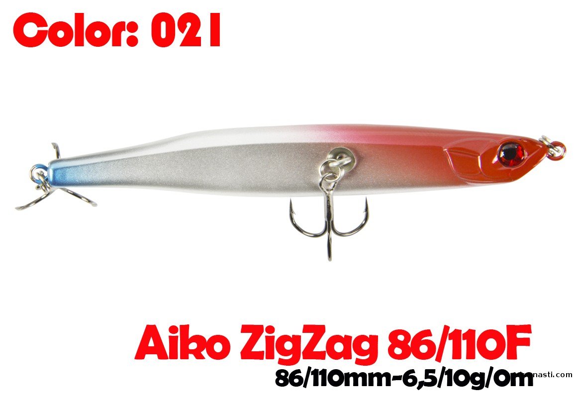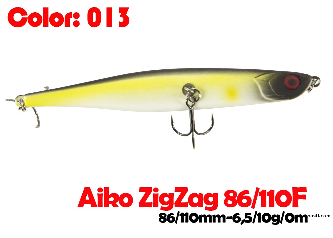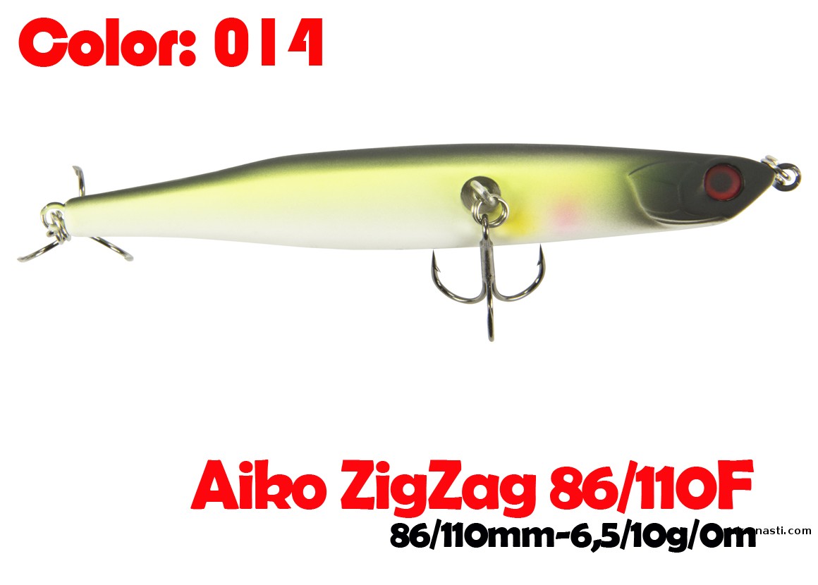 Воблер для рывковой проводки и анимации. Система огрузки расположена таким образом, что ZigZag лежит всегда на боку, плюс его стабилизирует нижний тройник. Все это создано для имитации раненой, почти умирающей рыбки, которая лежит у самой поверхности.