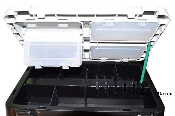 Зимний рыболовный ящик, на котором удобно сидеть и ловить различную рыбу. Внутри можно вместить различные приманки, удочки и принадлежности для рыбалки, а также в конце поместить пойманный улов. Множество дополнительных отсеков в крышке ящика позволяют удобно разместить снасти и наживку. Изготовлен из прочного морозостойкого пластика.