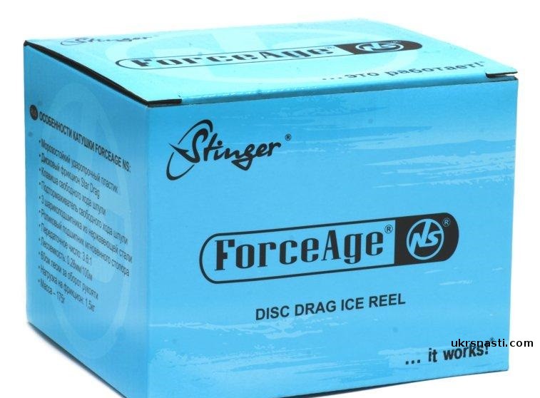 Stinger ForceAge NS 65 – прочная, плавная и продуманная катушка для ловли при минусовой температуре. Катушка выполнена в корпусе из морозостойкого материала на основе полиамида, так называемого Durethen. Главная пара выполнена из сплава металла. 4 подшипника обеспечивают ровный и мягкий ход. Фрикционный тормоз катушки, регулируемый гайкой-звёздочкой, способен выдержать нагрузку до 1,5кг.
